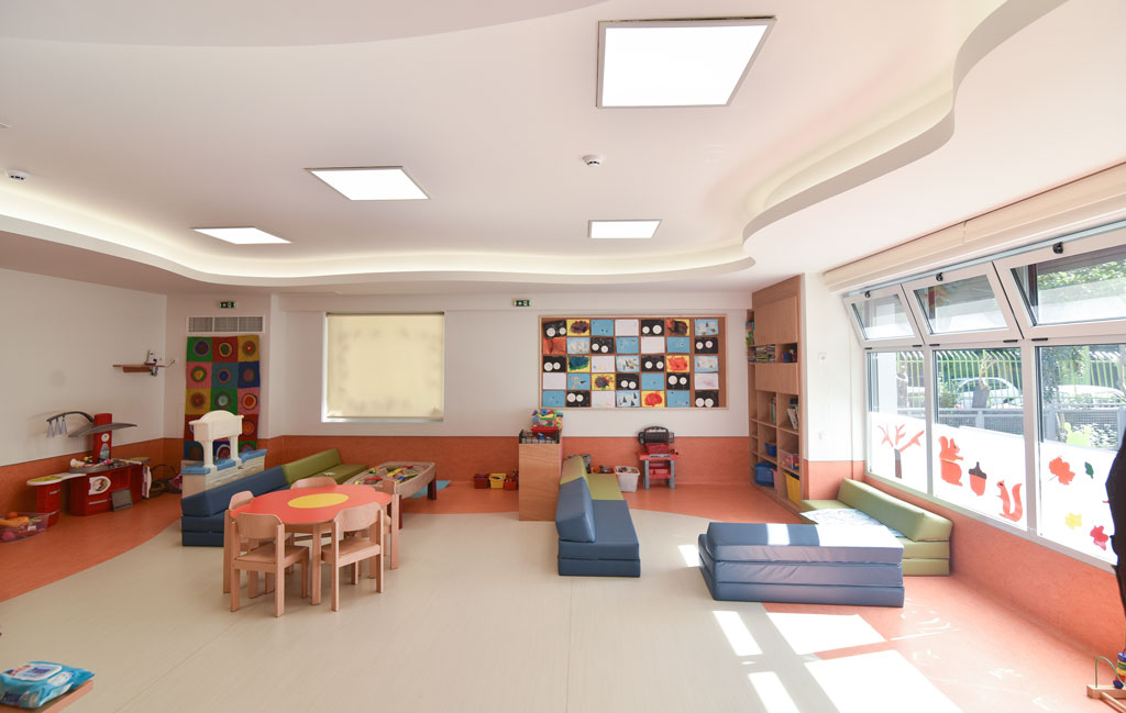 To κτίριο ανήκει στο Βαφειαδάκειο Ίδρυμα και λειτουργεί ως Δημοτικός Βρεφονηπιακός Σταθμός του Δήμου Βύρωνα. Κατασκευάστηκε το 1965. Αποτελείται από : • Ισόγειο ~710μ2 που λειτουργεί ως Νηπιακός Σταθμός για 75 νήπια από 2.5 ετών έως 4.5 ετών και • Α Όροφο ~500μ2 που λειτουργεί ως Βρεφικός Σταθμός για 60 βρέφη ηλικίας από 8 μηνών ως 2.5 ετών. Αντικείμενο της μελέτης ήταν η πλήρης ανακαίνιση και ο εκσυγχρονισμός των οικοδομικών και η/μ εγκαταστάσεων, προκειμένου να διασφαλιστεί ένα σύγχρονο και ασφαλές περιβάλλον για την διαμονή των παιδιών. Η επιλογή των παρεμβάσεων βασίστηκε στους κάτωθι στόχους : - Ενεργειακή αναβάθμιση του κτιρίου με την δημιουργία ενός θερμομονωτικού κελύφους σε συνδυασμό με κατάλληλο σύστημα κλιματισμού - Δημιουργία ενός φιλόξενου ευχάριστου περιβάλλοντος, προσαρμοσμένου εργονομικά και προσιτού στην χρήση από τα παιδιά που φιλοξενούνται - Χώροι κατάλληλα διαμορφωμένοι, ασφαλείς στην χρήση των παιδιών όχι μόνο μέσα από την διασφάλιση της εύκολης και άμεσης εποπτείας με την βοήθεια και των η/μ εγκαταστάσεων, αλλά και με την χρήση κατάλληλων υλικών τελειωμάτων( δάπεδα, τοίχοι οροφές) και υλικών εντεταγμένου και κινητού εξοπλισμού - Αύξηση της διάρκειας ζωής του κτιρίου και των εγκαταστάσεων, με εφαρμογή υλικών και κατασκευών με αυξημένη αντοχή στην καθημερινή καταπόνηση - Διασφάλιση υψηλού επιπέδου υγιεινές με «εύκολη» συντήρηση, με την δημιουργία επιφανειών ενιαίων και με την ελαχιστοποίηση των αρμών. - Ευελιξία στην χρήση και μετατροπή των χώρων ανάλογα με τις εκπαιδευτικές ανάγκες με την χρησιμοποίηση κινητών χωρισμάτων και κατάλληλων η/μ εγκαταστάσεων - Διασφάλιση καλού φυσικού και τεχνητού φωτισμού και εξαερισμού των χώρων, σωστού κλιματισμού, καθώς και της απαιτούμενης ανά χώρο ηχομόνωσης και ηχητικής άνεσης. Iδιοκτητης : Βαφειαδάκειο Ιδρυμα Στατικα: Ε. Σταματάκης Η/Μ : Ι.Τζουράλας Κατασκευή : CONTACT LTD Τοποθεσία :Βύρωνας , Αττική Επιφάνεια : 1210 μ² Προϋπολογισμός :1.000.000