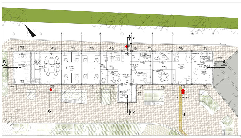 Επίσης θα περιλαμβάνει παρεμβάσεις στον άμεσο Περιβάλλοντα χώρο, ώστε να εξυπηρετεί λειτουργικά τις χρήσεις του κτιρίου και να διαθέτει υπαίθριους χώρους εκτόνωσης και προσωρινής παραμονής των χρηστών.