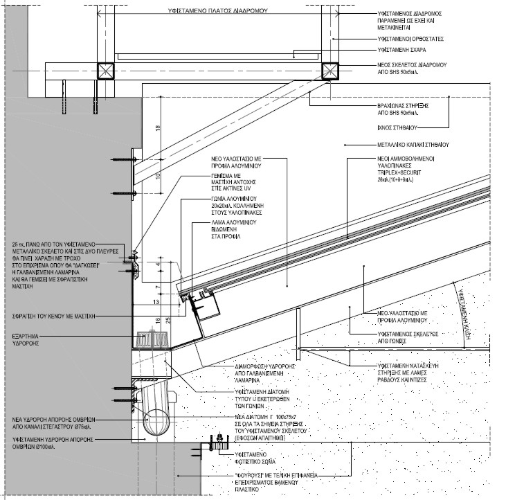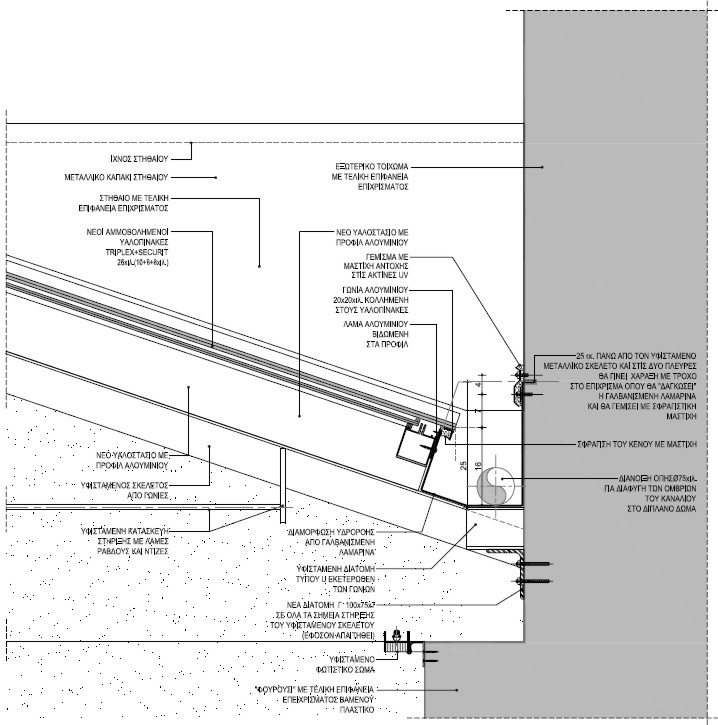 Νέο στέγαστρο αυλής κτιρίου Μ.Ι.Ε.Τ. στο νεοκλασικό κτίριο της Αγίου Κωνσταντίνου.